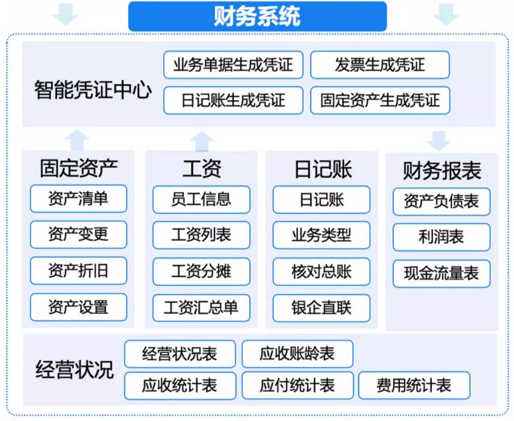 业财一体软件以“数据自动流转、流程智能协同”为设计核心,覆盖从业务发生到财务结账的全流程: